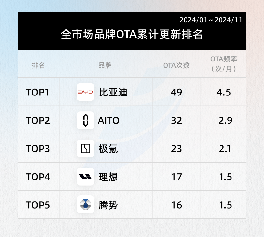 11月OTA总览 | 长城实现“全国都能开”,理想开卷“车位到车位”