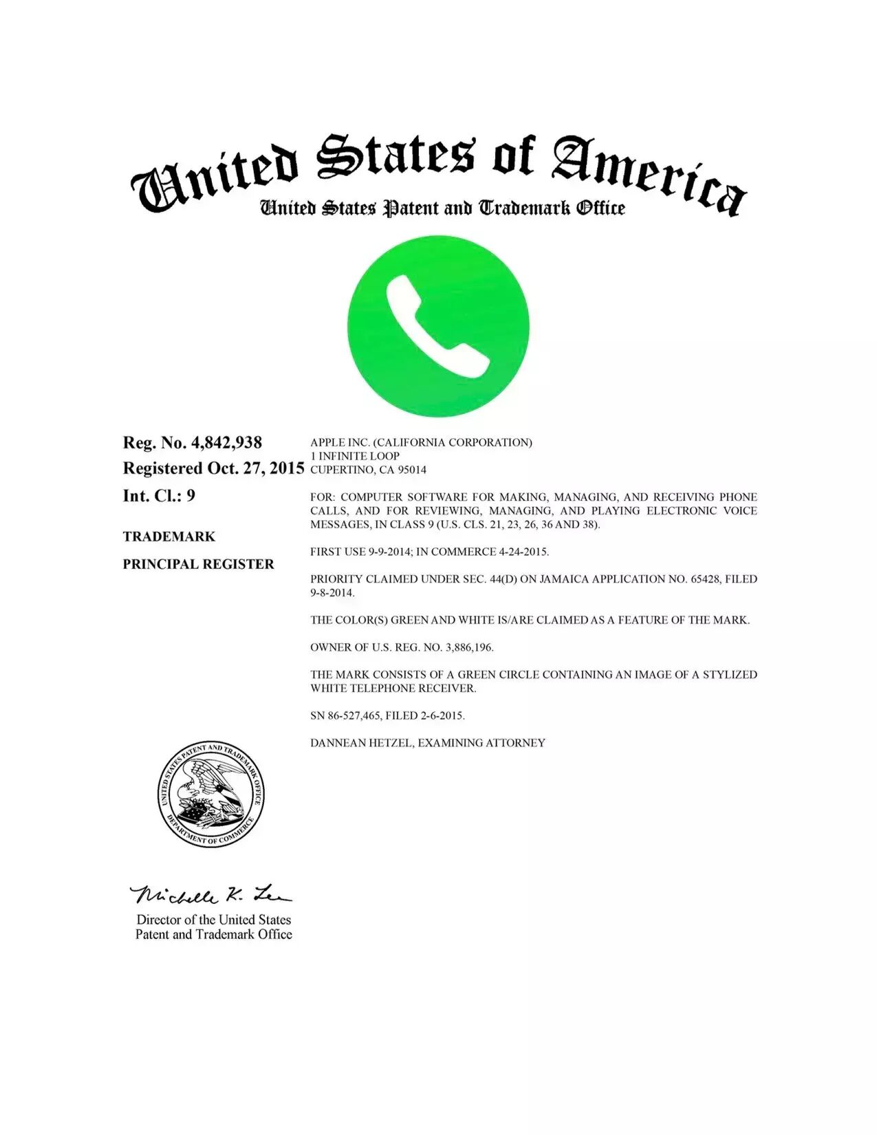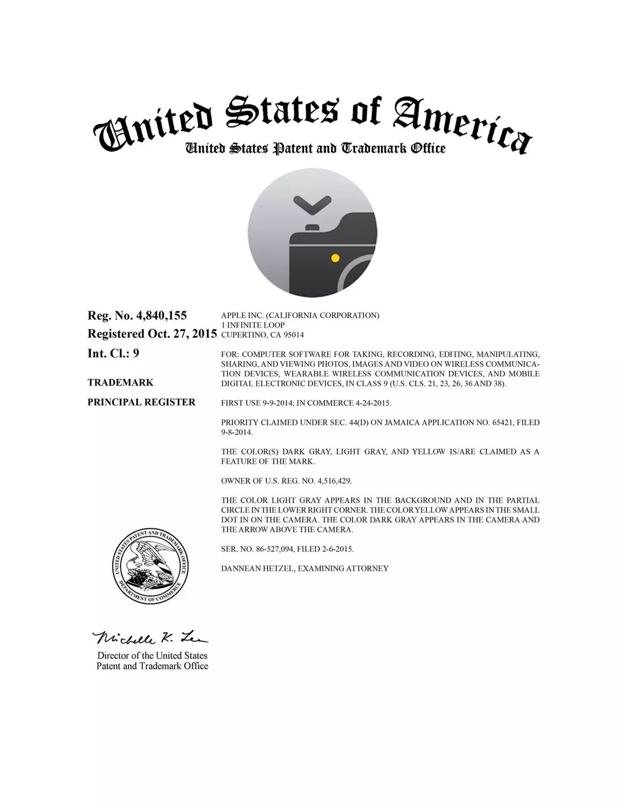 10月27日,苹果公司被美国专利和商标局授予6件适用Apple Watch的注册商标。