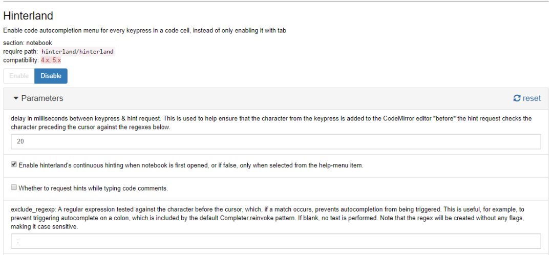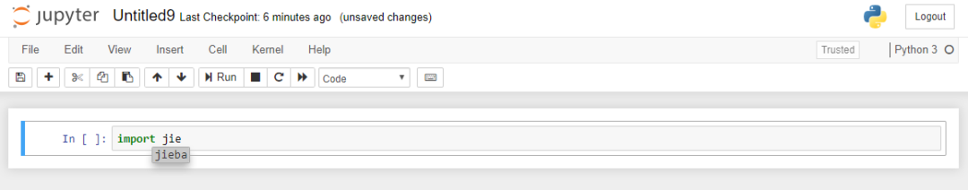 该模块主要可以帮助大家将程序自动补齐。可以像众多外部文本编辑器如sublime text、Spyder一样自动补全功能包括自动补全文档中已经存在的单词、Python命令、引号“""”、圆括号“()”、花括号“{}”和方括号“[]”等。在Nbextensions选择该模块,新建一个Python3脚本,输入“import jieba”会帮助自动补齐,添加这个功能能更方便我们编程,减少记忆负担和拼写错误的概率。