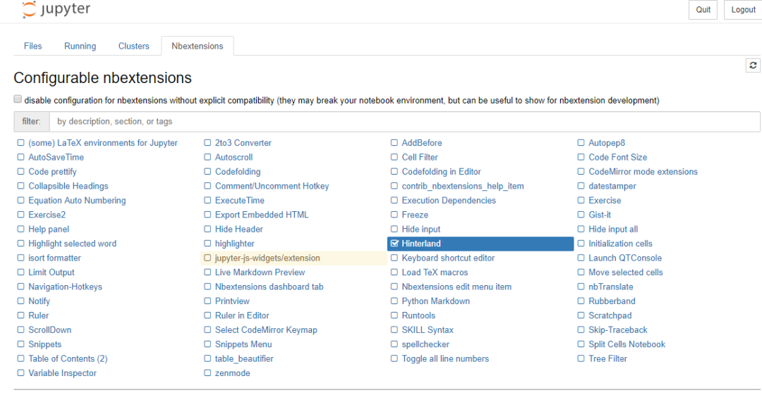 pip install jupyter_contrib_nbextensions && jupyter contrib nbextension install –user
