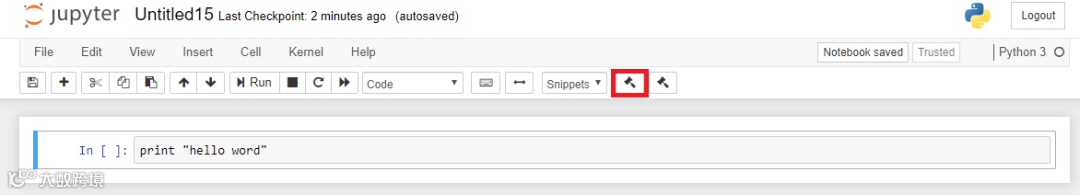 一直使用Python编程的用户,往往会由于Python版本升级而带来困扰,尤其是Python2和Python3语法出入较多,之前的程序切换到新版本上出现多处报错以至于无法运行。此时需要对以往的程序进行核对修改,耗费大量时间,但是在Nbextensions就可以很好地解决这个问题,只需要选中Nbextensions的2to3 Converter模块。就可以一键将Python2版本的程序转换为Python3版本的程序。以Python2的程序是print “hello word”为例。如下图所示。