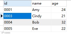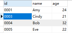 data=[('0003','Cindy',21),('0004','Bob',32)]