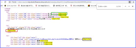 这样,我们保留了高管信息所在的行,下一步就是把姓名、职务、起始日期、终止日期提取出来。观察下面的链接,
