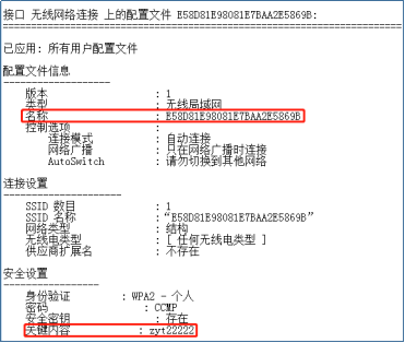 运行该行程序,我们可以得到电脑所连接过的所有WiFi的配置信息,将其放入到1.txt之中,内容如下图所示(部分截取)。
