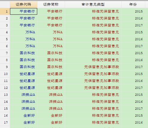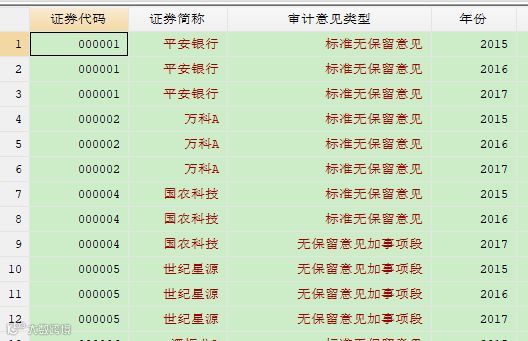 另外,我们还会遇到将一个变量的观测值定义为另一变量的标签值的问题,那该如何解决呢?这里可以用到一个外部命令labmask(执行命令findit labutil下载labutil命令即可),我们以国泰安上一个关于公司审计意见的数据集为例进行介绍,样本数据如下所示: