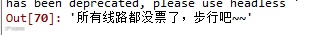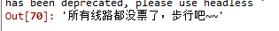news="所有线路都没票了,步行吧~~" #如果一条观测都没有。说明当天所有车次都没有票