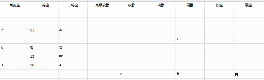 10: '动卧', 11: '硬卧', 12: '软座', 13: '硬座', 14: '无座'}