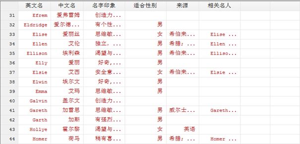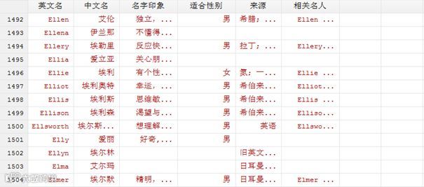 如此,我们便用短短30余行代码将名字大全网站上的全部英文名信息爬取下来了,最终成果如下: