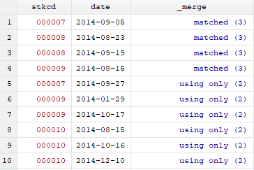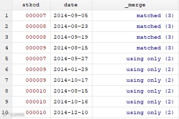 matched(3)表示两个表中的数据一一匹配上,可以看出,原事件列表中,共有4件位于停复牌期间的事件。