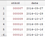 事件列表数据如下:stkcd表示股票代码,date表示事件发生日期。