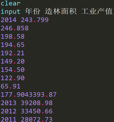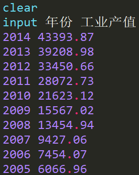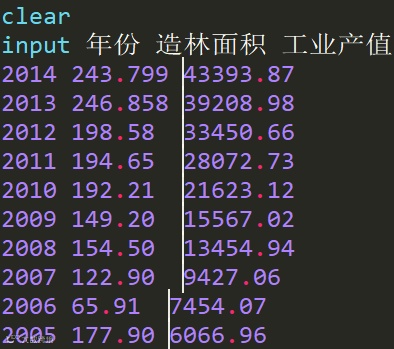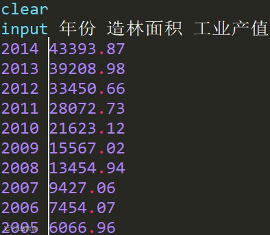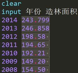 最近大家都忙于对付期末考试呀,爬虫俱乐部的小编们也不例外呢。我们前几天在准备高级微观的presentation时,突然就很想把论文中的数据搜集来自己写程序跑一遍。于是,我们从中国知网——中国经济与社会发展统计数据库中找到了论文中所需的每项指标的数据。但是啊,在把数据读入stata中时,我们遇到了一个小小的问题,由于是对单项指标查找并下载的数据,所以我们的每个数据都是单列的,我们展示其中两个指标10年的数据,如下图所示: