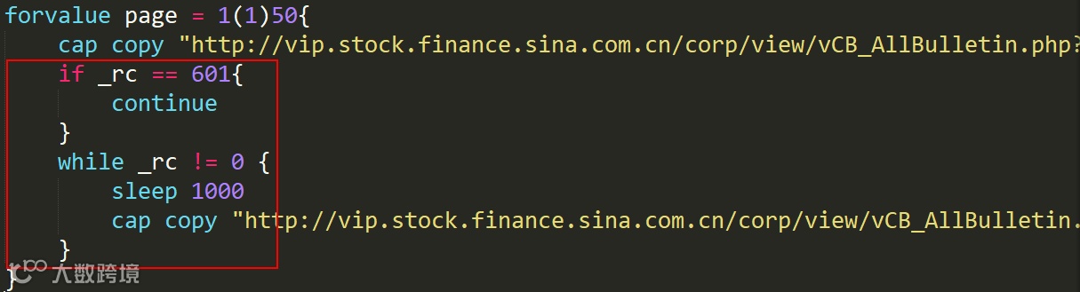 现在我们想在程序中加入两个很常用的循环:第一个是网页不存在时跳过进行下一个循环,第二个是如果没有成功抓取,我们让程序停6秒,然后继续抓取直到抓取成功,从而防止因为网速问题导致网页没有抓取成功,如下所示: