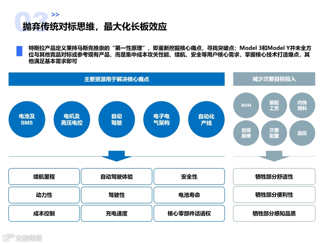 在产品定价策略、配置梯度设置方面,都积极地践行着“第一性原理”和产品三角理论,加强供应链带来规模效应和成本优势,同时挖掘用户使用核心痛点,赋予产品较高的使用价值,适当舍弃非核心非必要的附加价值,从而获得较好的产品溢价、通过价格反哺强化自己的产品定位。