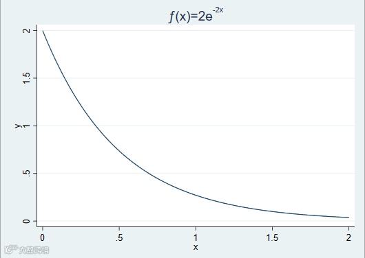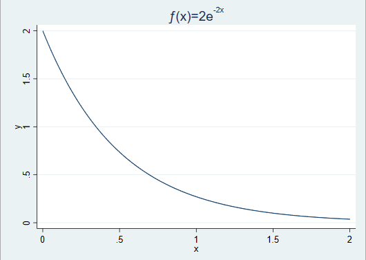 twoway function y = 2*exp(-2*x), range(0 2) ///