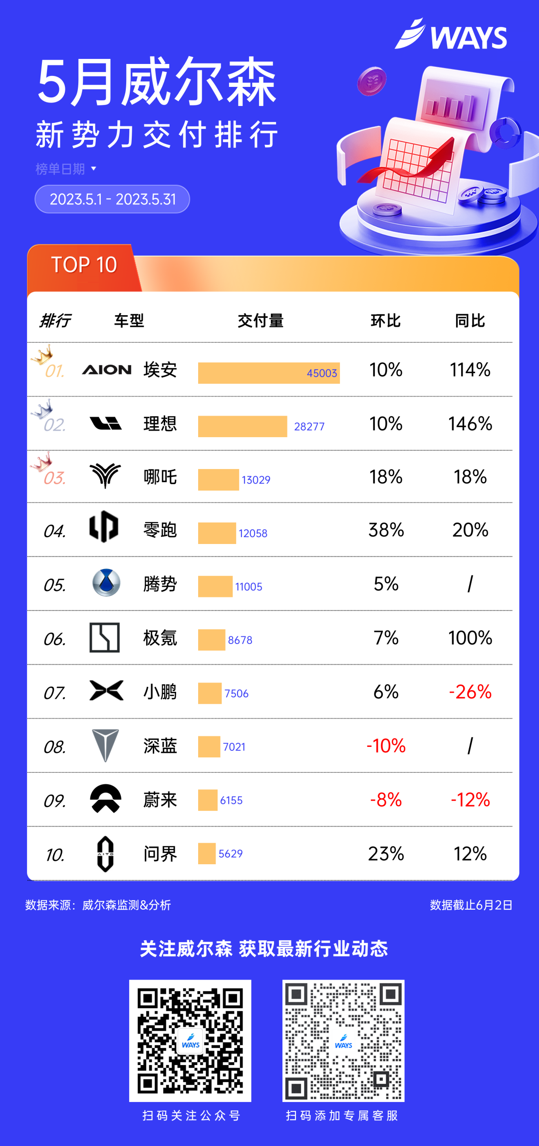 5月新势力销量快讯:理想和埃安再创新高,蔚来和小鹏仍低迷