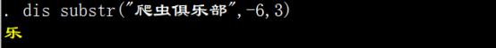 dis substr("爬虫俱乐部",-6,3) //从倒数第6个字节开始,提取3个字节,即为“乐”