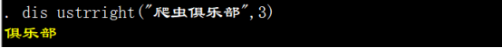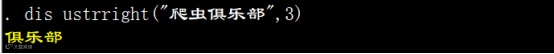 dis ustrright("爬虫俱乐部",3) //从最右边开始,提取三个字符——“俱乐部”。