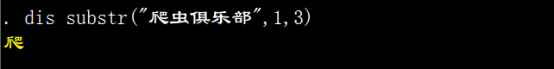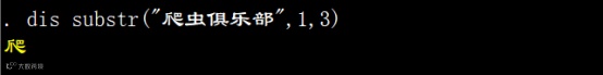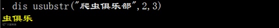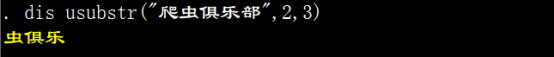 dis usubstr("爬虫俱乐部",2,3) //对于“爬虫俱乐部”这一字符串,从第二个字符开始,提取3个字符,所以输出结果为“虫俱乐”。