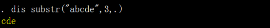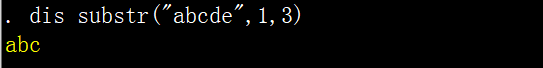 (1)dis substr("abcde",1,3) //英文字母为ASCII编码的字符,从“abcde”这个字符串的第一个字节开始,提取三个字符,即为“abc”