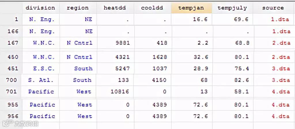 append using 2 3 4,gen(source) //使用gen选项生成一个变量source,以显示观测值来源