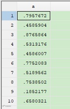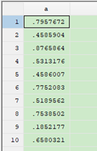 上面提到的连乘问题当然是很简单的,我们手工或用计算器都能很快地得到答案。如果我们想计算如下图所示变量a的连乘结果,在stata里应该如何操作呢?