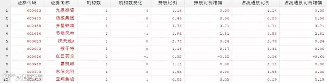 rename (v - v7) (证券代码证券简称机构数机构数变化持股比例持股比例增幅占流通股比例占流通股比例增幅)