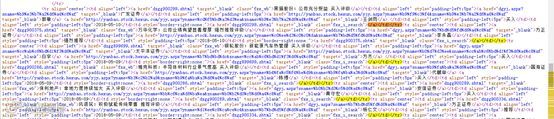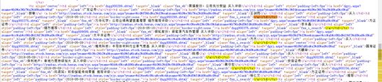 以第一页为例,我们打开其网页源代码,通过分析发现标签“</a></td></tr>”仅存在于我们所需信息所在行。