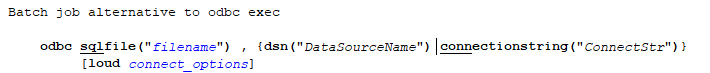 odbc sqlfile(`"e:/mysql/sample.txt"'),dsn("Stata_Mysql")