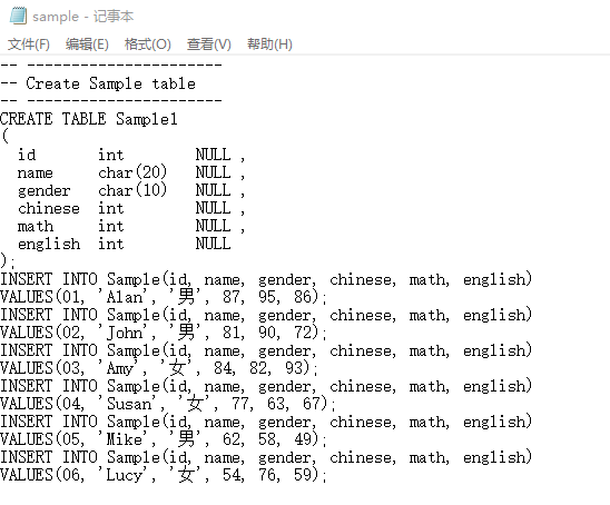下面只需要在sample.txt中修改表名后,再运行上述程序即可: