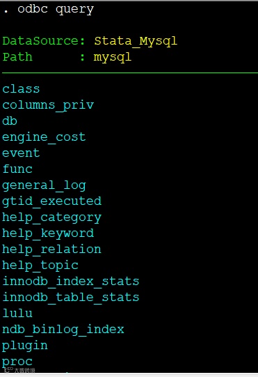 在之前的推文中,我们详细的介绍了如何让Stata与MySQL自带数据库mysql中的数据成功的交互。如果我们想通过Stata在MySQL中新建一个表该怎么操作呢?下面小编将介绍两种方法来创建表文件。在正文开始前,小编需声明接下来的示例中小编使用的MySQL的自带数据库mysql。