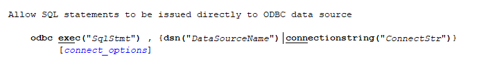 第一种方法是使用odbc exec,首先查看其作用和语法如下:
