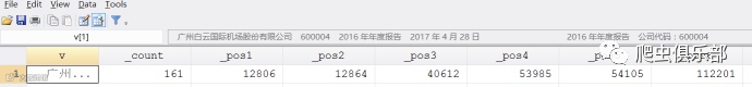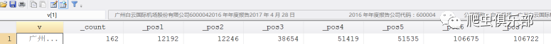这里我们统计出来“合并”的个数为161,但是被分行的“合并”事实上还是没有被统计到,原因是我们可以看到stata上方编辑框中“广州白云国际机场股份有限公司”、“600004”、“2016年年度报告”等这些在文本文档中处于不同行的字符串导入到stata中后被类似于“空格”的字符分隔开,因此在不同行的“合并”也会被这些类似于“空格”的字符分隔开,从而不会被统计到。很直观的办法,我们只需要把这些类似“空格”的字符删除掉,问题就得到了解决。那么首先我们要弄清楚,这些字符究竟是什么?