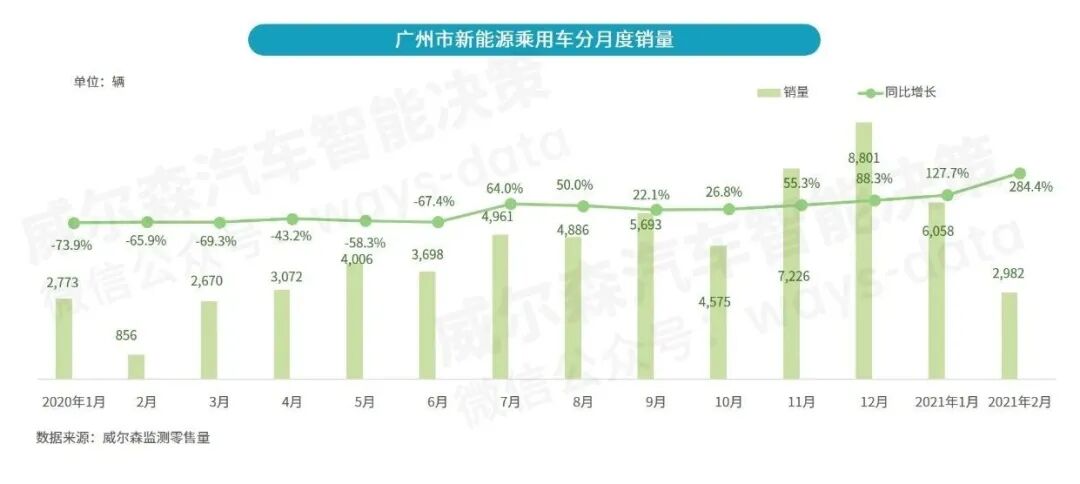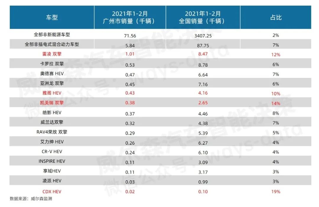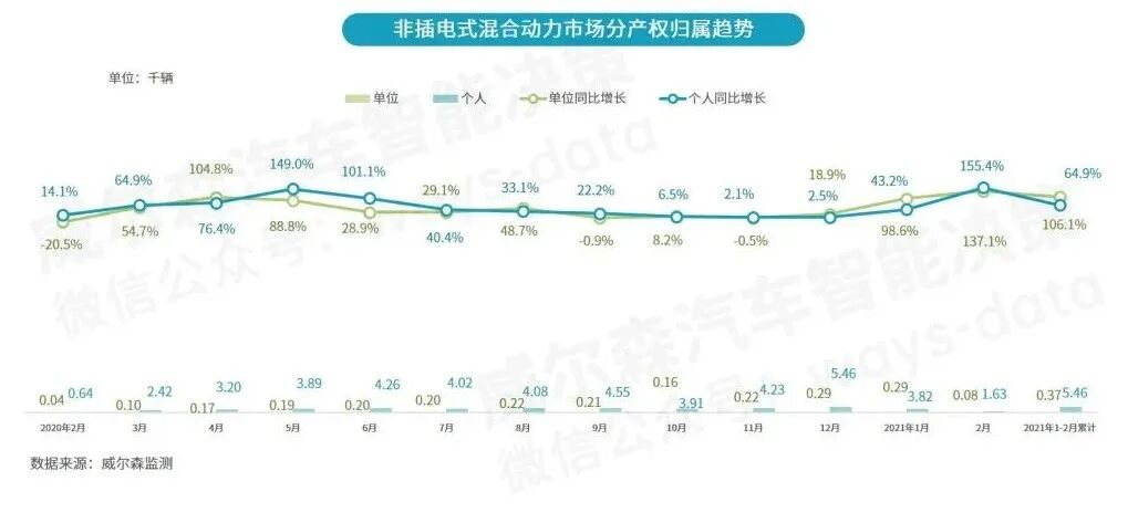 节能车增量指标的增加,或将直接利好非插电式混合动力市场。从2021年1-2月累计来看,广州市非插电式混合动力市场以个人用户为主,占比达93.7%,同比增长64.9%;单位用户销量同比增长106.1%。