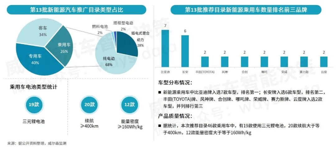 12月31日,工信部发布2020年第13批新能源汽车推荐目录,共有175款新能源车型入选,其中符合2020产品技术要求的新能源车型有141款、其他新能源车型有34款,新能源乘用车入选46款车型。