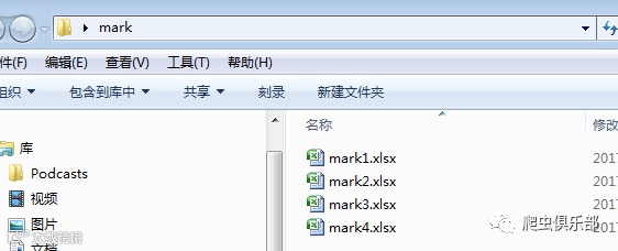 比如,爬虫君现在有4个excel文件放在E:/桌面/mark文件夹中。