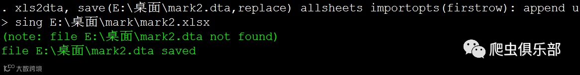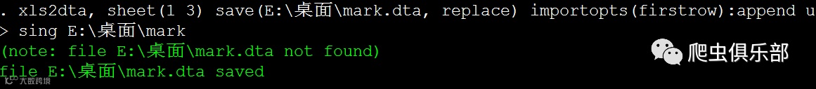 xls2dta,save(E:\桌面) allsheets:import excel using E:\桌面\mark,firstrow