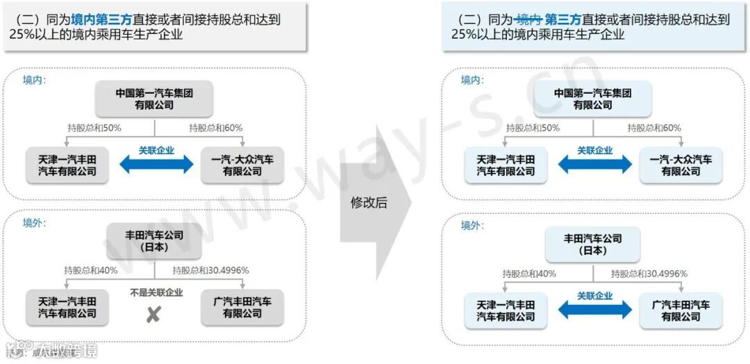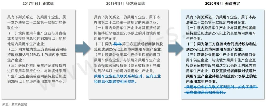 新版政策放宽了关联企业的范围,允许同一外方母公司旗下的合资企业间、国内汽车企业与其持股的境外生产企业所对应的授权进口供应企业间转让平均燃料消耗量积分。