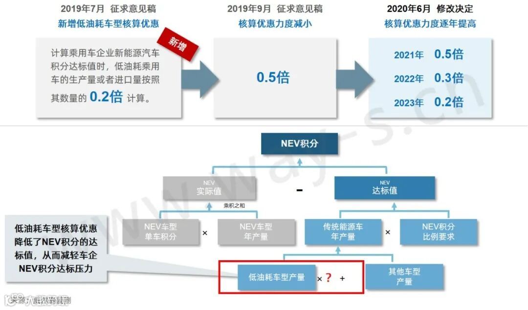 逐步提高低油耗车型核算优惠力度,并将油耗水平与新能源积分结转挂钩,倒逼车企改进传统能源汽车节能水平,无疑对有HEV车型的车企是利好的。