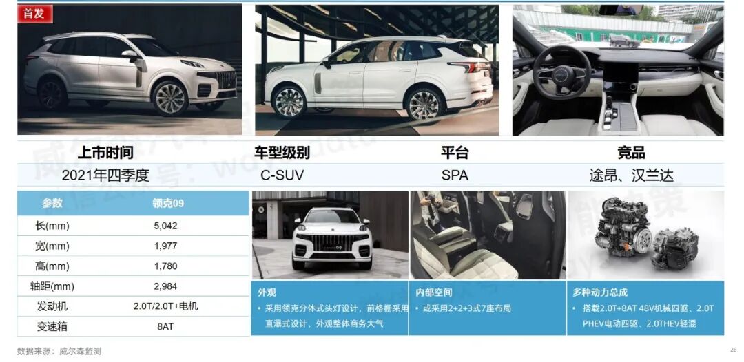 新车看点:SPA架构开发、简约奢华设计、7座空间、L3级自动驾驶辅助、2.0T搭配多种动力组合、博格华纳六代四驱。