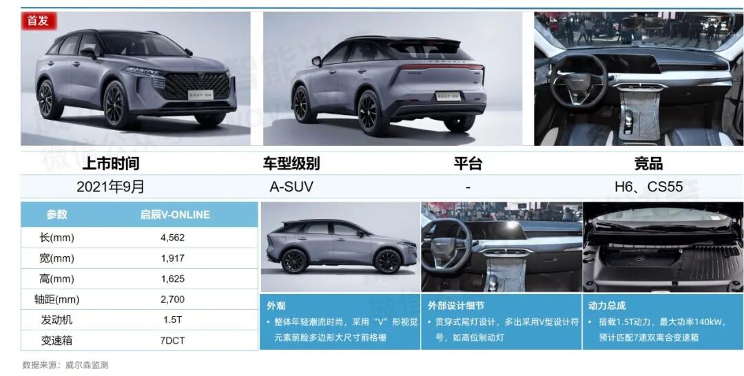 东风日产 启辰大V 新车是启辰全新的一款紧凑型SUV,预计定位低于启辰星;新车于8月20日发布,于成都车展首发亮相,并开启预售。