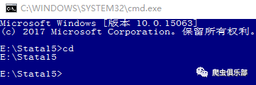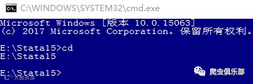 比如,我们想查看当前的主目录,可以在cmd上输入“cd”,随即显示当前主目录为“E:/Stata15”。