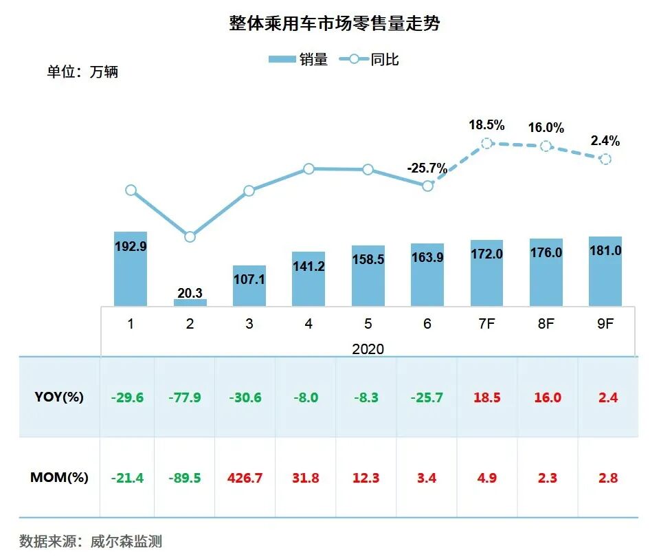 根据发布的《报告》显示,整体乘用车市场持续恢复,预测环比保持5%以内的增长;7~8月由于去年同期需求被国V清库促销透支,销量骤降,在低基数对比下,同比实现较高增长;豪华市场增长态势良好,持续为市场带来理想的增速贡献。