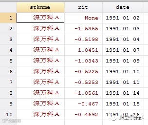 head("`b'\ql{`=ustrto("股票代码","gb2312",1)'}`d'\qr{`=ustrto("日收益率","gb2312",1)'}`d'\qr{`=ustrto("交易日期","gb2312",1)'}`e'")