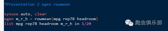egen函数作为generate的扩展,有着很强大的特性,拥有着众多的生成变量函数,能够满足不同的需求,具体的应用大家可以去看help文档,熟悉了会有很多应用,比如某些命令不支持在by或bysort,可以利用group来分组,然后用循环的形式来处理。本次简单介绍的是egen rowmean,用于取变量均值,该命令会依据列入其中的varlist生成横向均值。以下是命令演示: