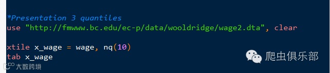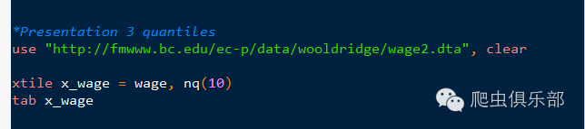 (3)变量分级(依据分位数分级):xtile and quantiles