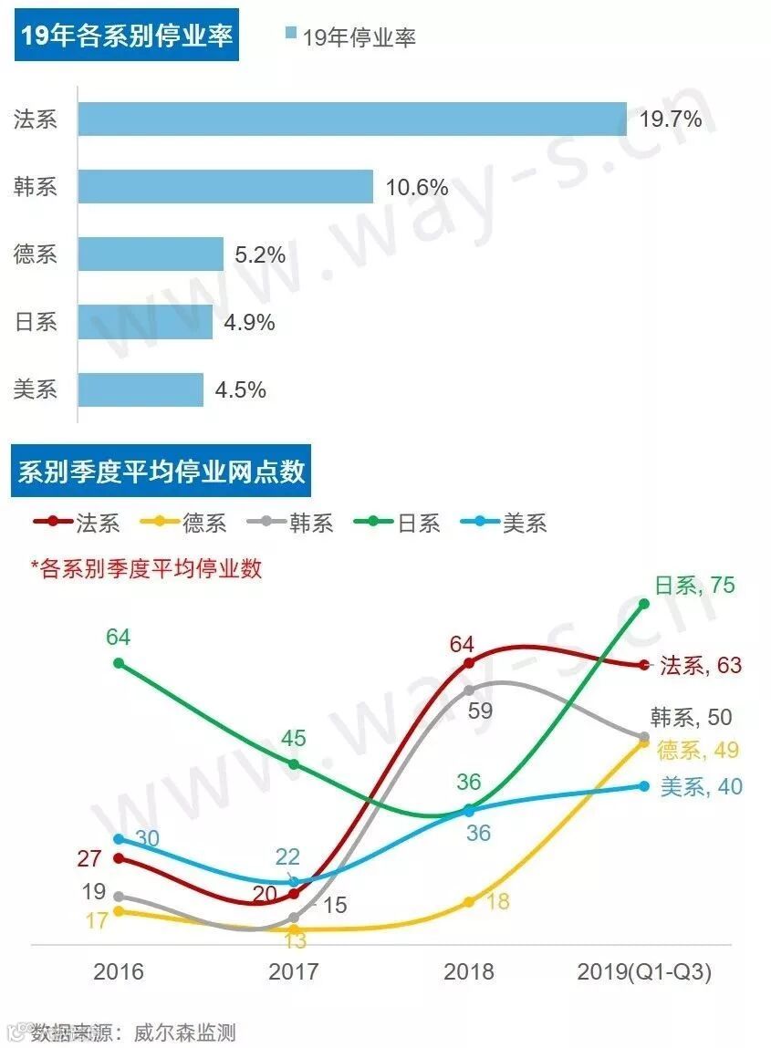 按系别拆分,法系合资品牌在2019年的销量蒸发50%,停业率也惊人的达到了近20%的水平,车市寒冬正在对法系品牌造成强烈冲击。