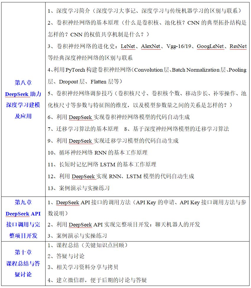 1.本地知识库简介:什么是本地知识库,它如何与DeepSeek相结合,为用户提供定制化的解决方案。 2.(课堂动手练习)Ollama软件下载 3.(课堂动手练习)把DeepSeek模型下载到电脑本地 4.(课堂动手练习)在电脑本地使用DeepSeek模型 5.(课堂动手练习)基于本地DeepSeek搭建本地AI智能体 6.(课堂动手练习)基于本地DeepSeek搭建本地AI智能体 7.(课堂动手练习)将本地知识库与DeepSeek对接,提供个性化服务。 8.(课堂动手练习)利用本地知识库进行特定领域的论文问答和论文写作 |