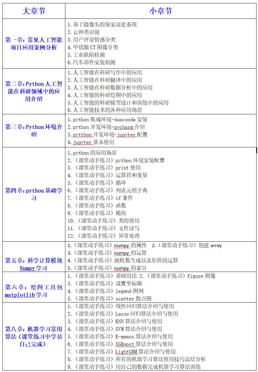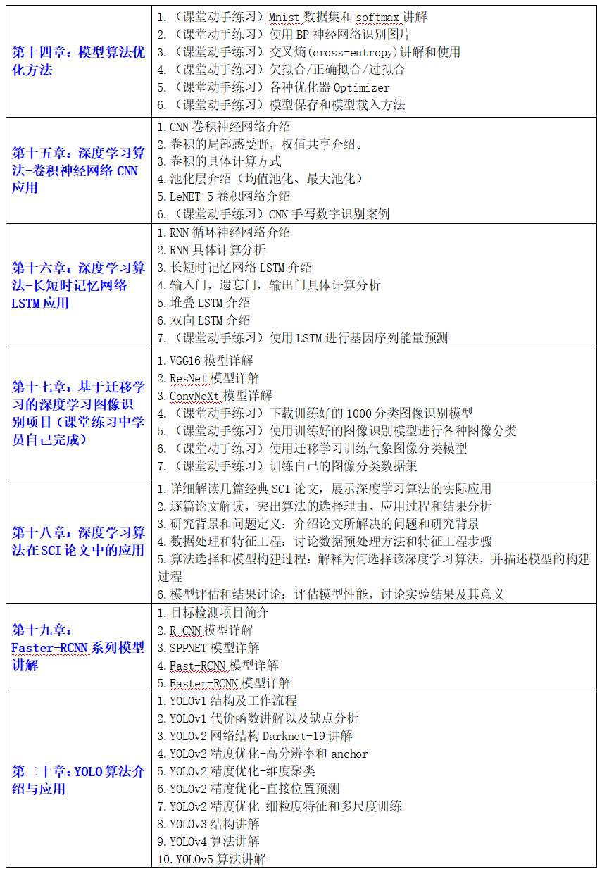 本课程旨在通过全面、系统的学习,使学员掌握Python在科研领域中的应用,特别是如何利用人工智能技术推动科研进展。课程内容涵盖了从基础的Python编程到高级的机器学习和深度学习算法,逐步引导学员掌握科研数据分析、模型设计与训练、以及科研绘图等关键技能。同时,课程特别强调人工智能在科研写作、和数据处理中的实际应用,帮助学员高效完成科研任务。课程通过详细的理论讲解和丰富的课堂动手练习,让学员深入理解和掌握各类人工智能算法的原理与应用方法。课程内容包括Numpy和Matplotlib等科学计算和绘图工具的学习,机器学习算法的应用与优化,以及深度学习算法在图像识别和目标检测中的实际应用。特别设置的案例分析环节,通过介绍各种跟科研相关的实际项目,帮助学员将所学知识应用到具体的科研项目中。此外,课程还介绍了最新的人工智能技术,如YOLOv10目标检测与分割算法和大语言模型ChatGPT在科研中的应用,全面提升学员的科研能力和创新水平。通过本课程的学习,学员不仅能够独立完成SCI论文中的各类数据分析和模型构建任务,还能够在科研过程中有效应用人工智能技术,提高科研效率和成果质量。具体事宜如下:
