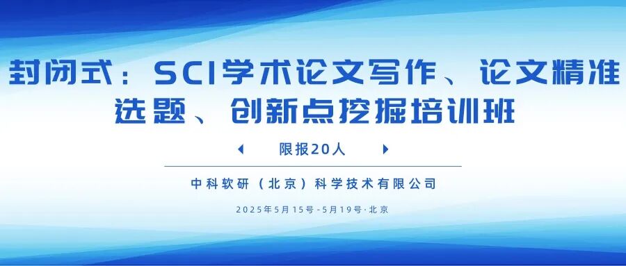 学术论文写作是许多科研人员、研究生以及青年学者都会面临的重要挑战。从选题的确定到创新点的挖掘,再到最终成稿,每一步都需要逻辑清晰、方法科学和语言精准。然而,繁重的科研任务和有限的指导资源让许多人在论文写作过程中感到迷茫。为了解决这一难题,中科软研(北京)科学技术中心联合双一流高校教授共同精心设计了《SCI论文写作、论文精准选题、创新点挖掘封闭式培训班》课程,为学员提供系统化的写作指导和一对一深度辅导,助您突破论文写作的瓶颈。本课程的最大特色在于:导师全程参与与学员深度互动。课程期间,老师将与每位学员一对一沟通,针对您的研究领域和兴趣,探讨论文选题的可行性与新颖性,帮助梳理研究背景并挖掘创新思路。同时,课程采用封闭式集中训练模式,将学术写作拆解为具体步骤,从文献综述、研究方法到实验方案、结果分析,为您构建科学而高效的写作流程。现通知如下: