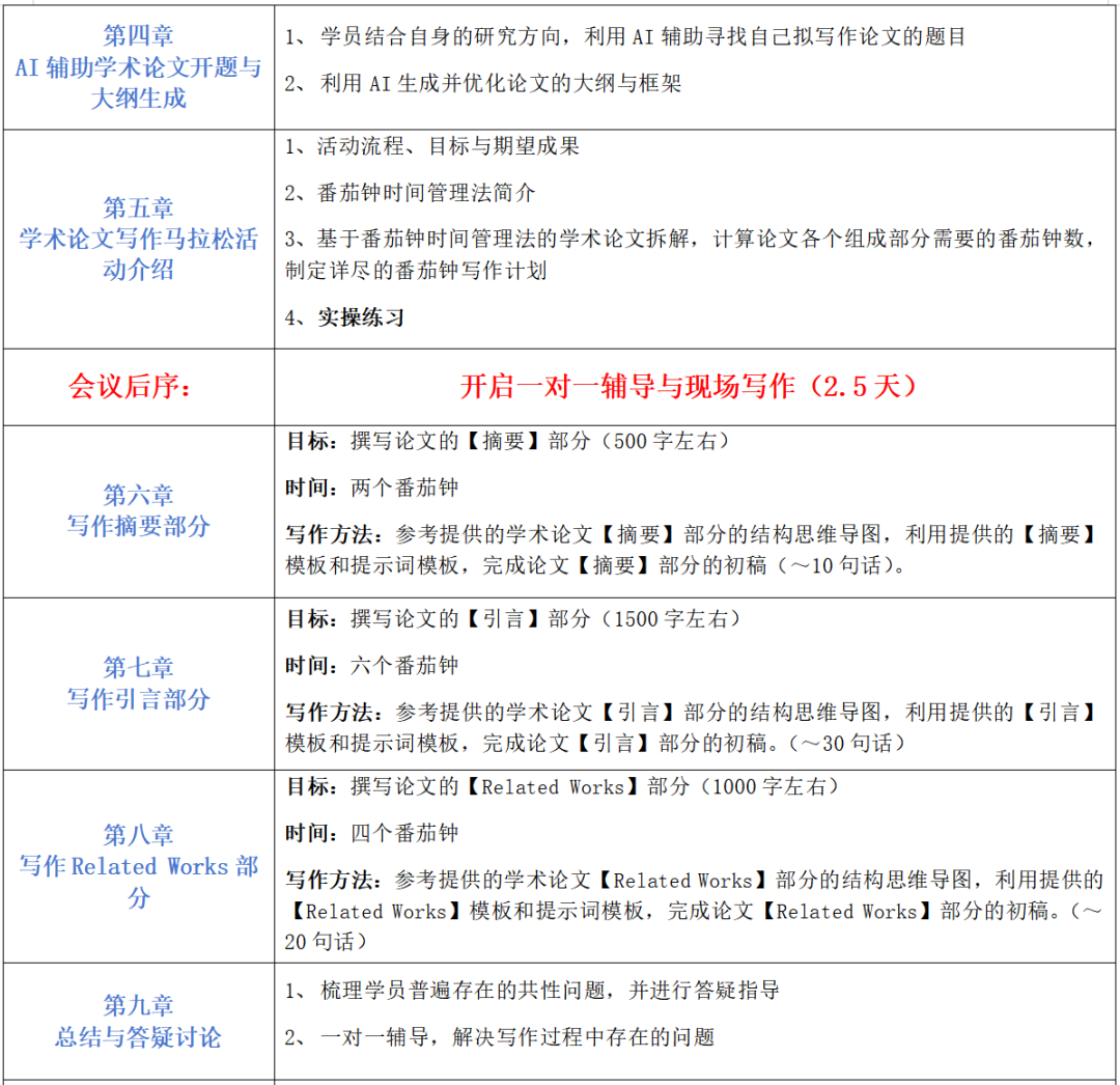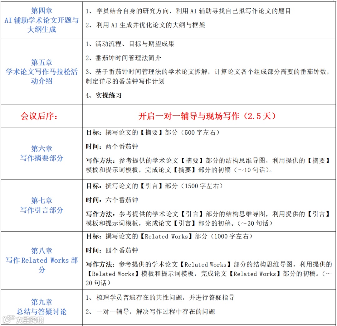 注:课程安排前序:老师讲解(1.5天) 后序:一对一与现场辅导写作(2.5天)限制报名20人,报满为止,请尽快与我们联系报名,预留名额。
